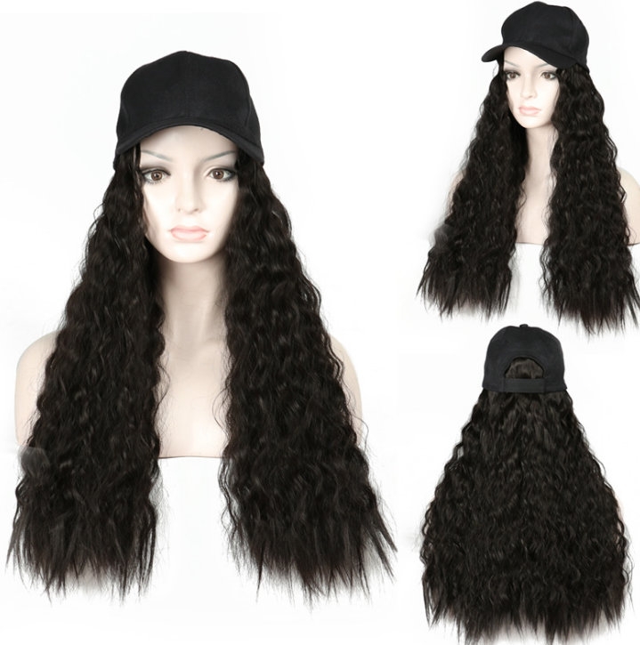 Color: Black, style: Wool roll – Hat wig one female wig female long hair natural fashion long curly hair big wave