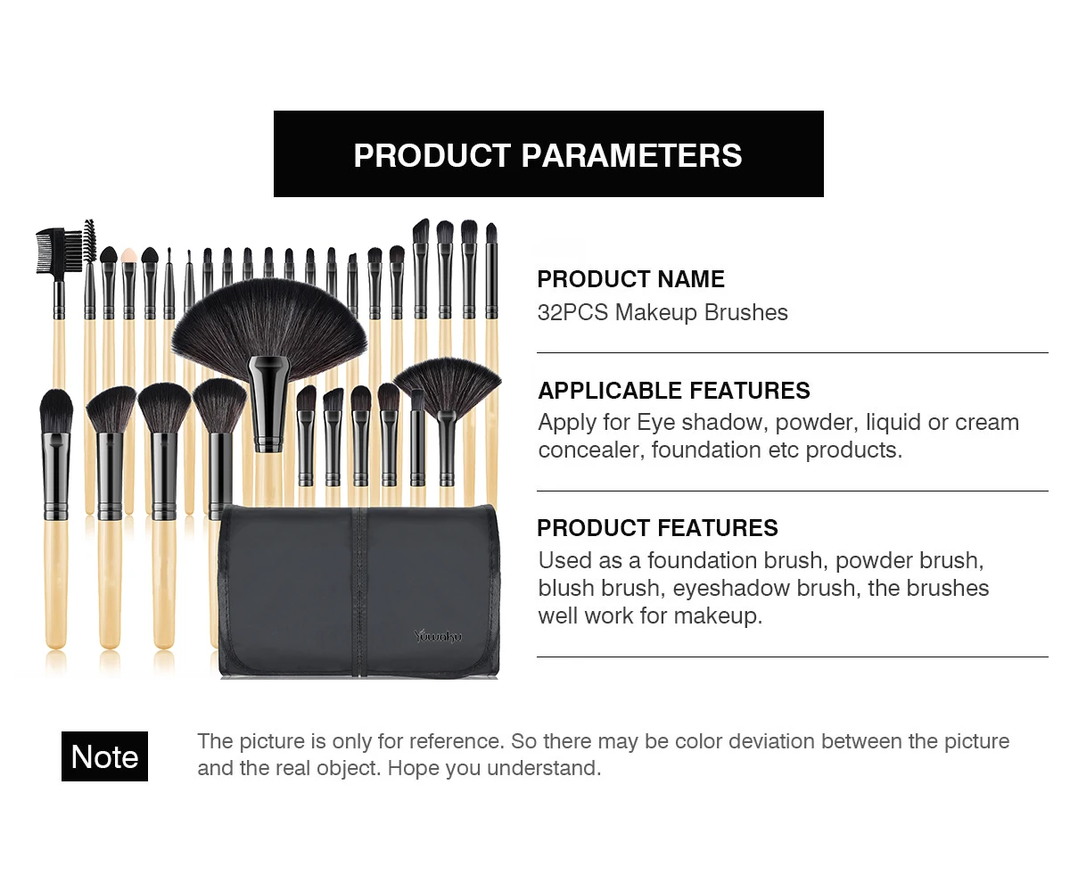 ✦Variety of Makeup Brushes✦This 32pcs makeup brush set is very popular with makeup artists and is made with high-end wood handles and high-quality fiber hairs. The makeup brush set includes all the best-selling single products, including eye shadow, eyeliner, brow, powder, blush, foundation, lip. Helps you create any makeup on your hair or face.